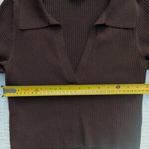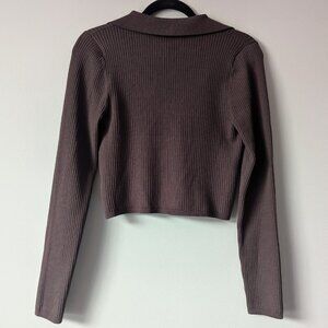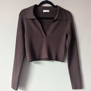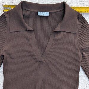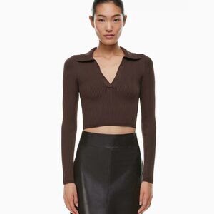 Babaton Aritzia Top Women Sculpt Knit Polo Longsleeve Rich Mocha Brown Size L