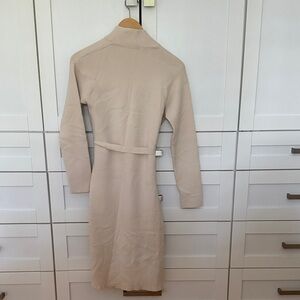 Elegant beige robe with a tie waist. Features two front pockets. Ideal for relaxation.