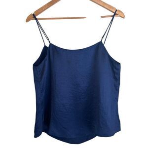 In excellent condition. Babaton by Aritzia Benji spaghetti strap camisole. Straight to happy hour. This is a bias-cut camisole with a square neckline and adjustable straps. It's made with a silk-like fabric from Japan. This version of the Benji comes in beautiful navy that would paid great with jeans or cream skirt or trousers. Flat lay measurements: 18" pit to pit, 17" length without the straps.