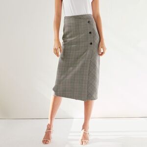 Babaton Billy Skirt Plaid Button Front Asymmetrical Grey Size 4