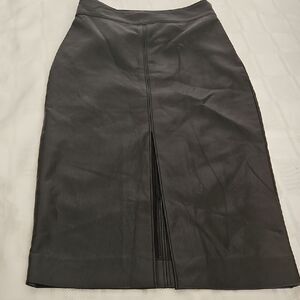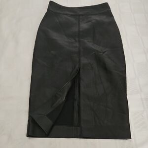This sophisticated black midi pencil skirt by Babaton features a sleek silhouette and a stylish slit, making it perfect for work or cocktail occasions. Its high waist and smooth matte finish add a touch of elegance to any outfit. Ideal for those seeking a timeless and versatile addition to their wardrobe.