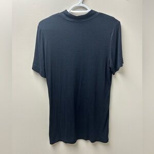 Keywords: Babaton top, mockneck tee, ribbed shirt, Aritzia Babaton, black top, minimalist style, fitted tee, capsule wardrobe basics