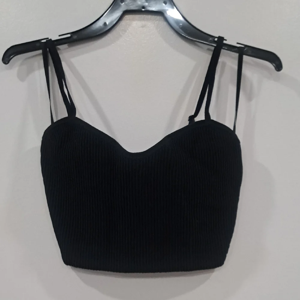 Fitted ribbed crop cami with a sweetheart neckline. Dual slim shoulder straps for a delicate look. Stretch fabric for a close, comfortable fit. Versatile piece for layering or wearing solo.