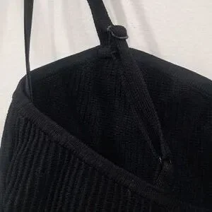 Babaton Black Ribbed Sweetheart Crop Cami with Double Straps