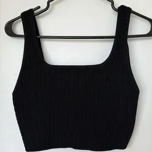 Babaton Black Ribbed Tank Top