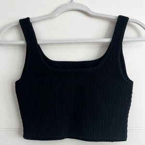 Elevate your style with this chic black ribbed top. Perfect for any occasion, this versatile piece is a must-have in your wardrobe.