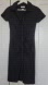 Chic black dress with ruched front. Features button-down design and short sleeves.
