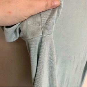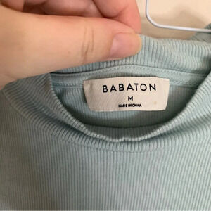 Babaton Blue Ribbed Cropped Mock Neck Short Sleeve Top M
