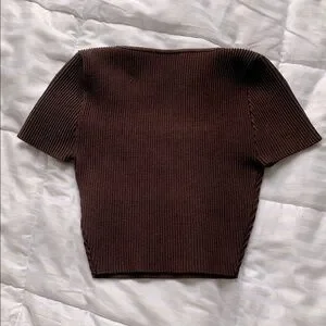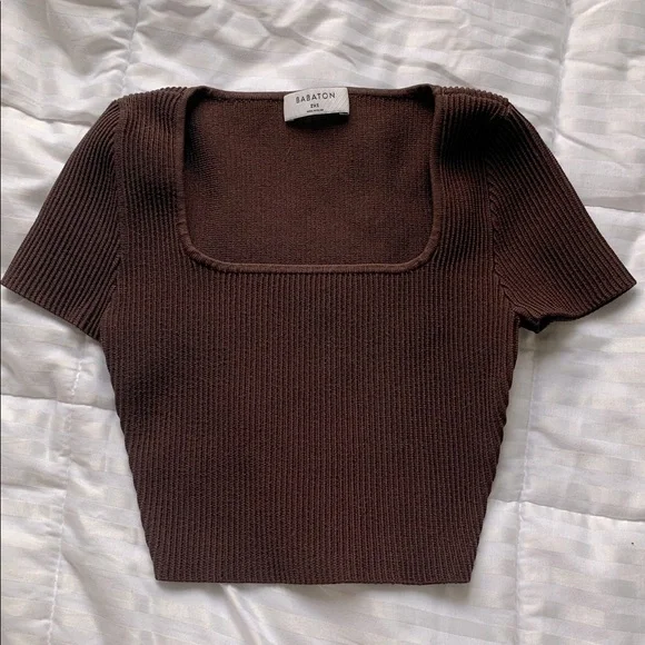 Elevate your wardrobe with the Babaton Brown Ribbed Knit Top. This stylish piece features a flattering square neckline and a comfortable fit, perfect for any occasion.