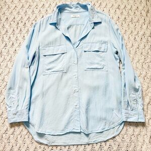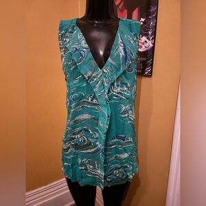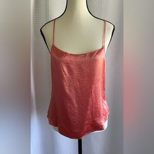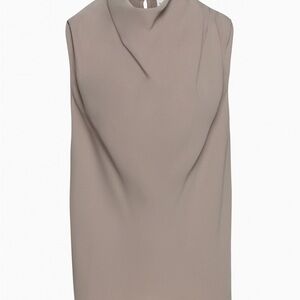 This is a sleeveless blouse with a cowl mock neckline and a keyhole cutout at the back. It’s made with Studio Drape — drapey matte satin with a smooth look and lightweight feel. This fabric is made with 50% recycled polyester.
