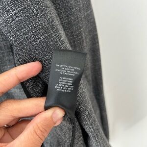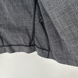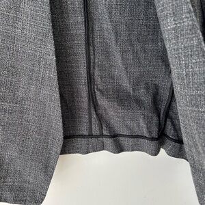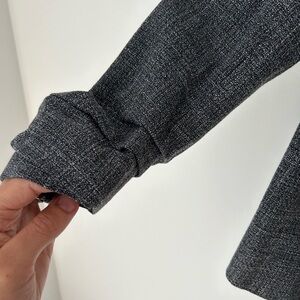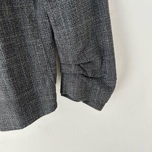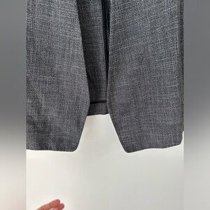 Sophisticated charcoal blazer. Open front style. Three-quarter sleeves. Ideal for office wear.