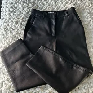 Vegan leather pants, cropped length, hits at the ankle. Lightweight, comfortable and versatile. Worn twice and in great condition