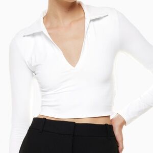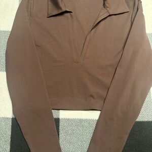 Babaton Contour Polo Long sleeve in Coffee Bean Size Large COLOUR IS IN DARK BROWN
