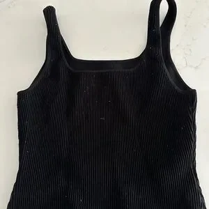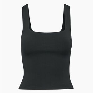 Stylish black tank top with a square neckline. Perfect for layering or wearing alone.