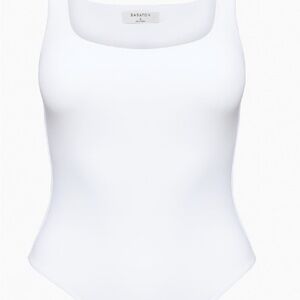 This is a tank bodysuit with double-layer fabric, a square neckline and a thong-cut bottom. It's made with Babaton's signature Contour — luxe, ultra-flattering fabric coveted for its smoothing effect and second-skin feel. Essential for every body.