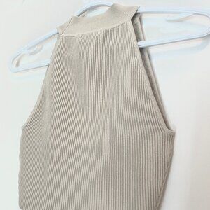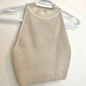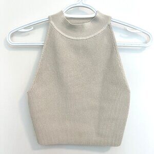 This is a fully fashioned cropped halter top finished with a textured ottoman stitch. It's made with Sculpt Knit — Babaton’s signature figure-smoothing yarn. The perfect amount of stretch hugs in the right places to shape and sculpt your form. It’s constructed using an Ottoman stitch with close distinct ribs for a structured and textural feel.