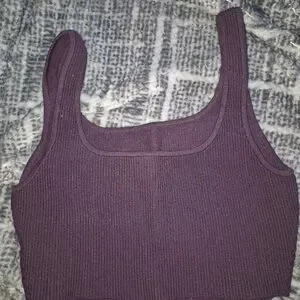 Stylish ribbed tank top in deep purple. Perfect for layering or wearing alone. Soft and comfortable fabric.