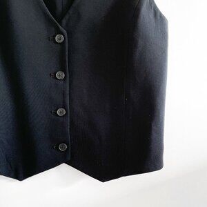 This is a classic button-up vest with princess seams for shaping. It’s expertly tailored with City Wool — softly structured stretch wool twill for all-season, all-city wearability. It’s sourced from a premier Italian mill.