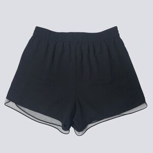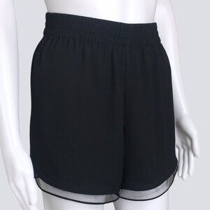 Stylish high waist design. Sleek black fabric. Ideal for versatile wear.