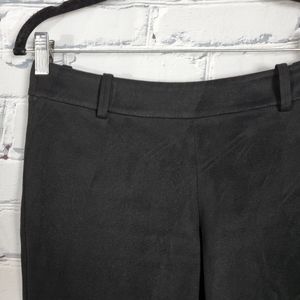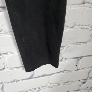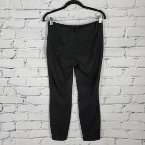 The Elliot pants from Babaton at Aritzia are a cigarette pant with a slim, stretch fit. They have belt loops and zipper at the side. They are in a soft, black faux suede. They are in good used condition.