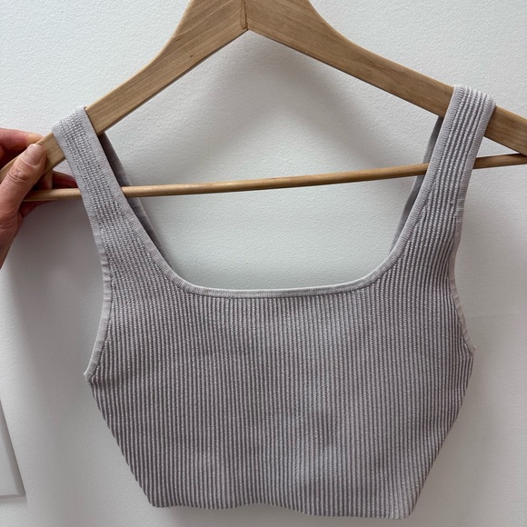 Babaton Light Gray Ribbed Crop Top