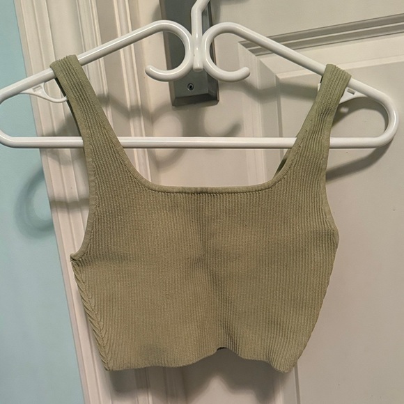 Chic light olive ribbed top. Ideal for everyday style.
