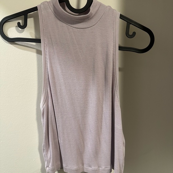 Chic lilac tank top with ribbed texture. Ideal for layering or standalone wear. Adds elegance to any look.