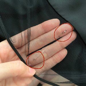 there is one more tear at the back. This I patched up with thread.(circled in red).
