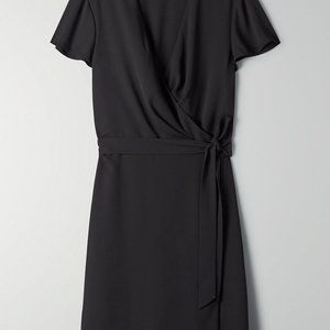 Perfection. This is a short-sleeve, wrap-front dress with a V neckline and self-tie waist. It's made from drapey, woven fabric with a liquid look and feel.
