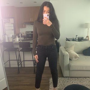 Babaton Olive Green Mock Neck Long-sleeved Shirt