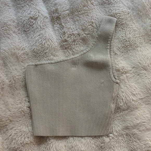 Stylish one-shoulder ribbed knit top in gray. Perfect for casual outings.