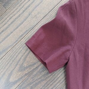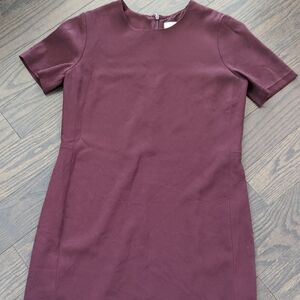 Burgundy mini dress from Babaton! It has short sleeves, lining, and zipper on the back.