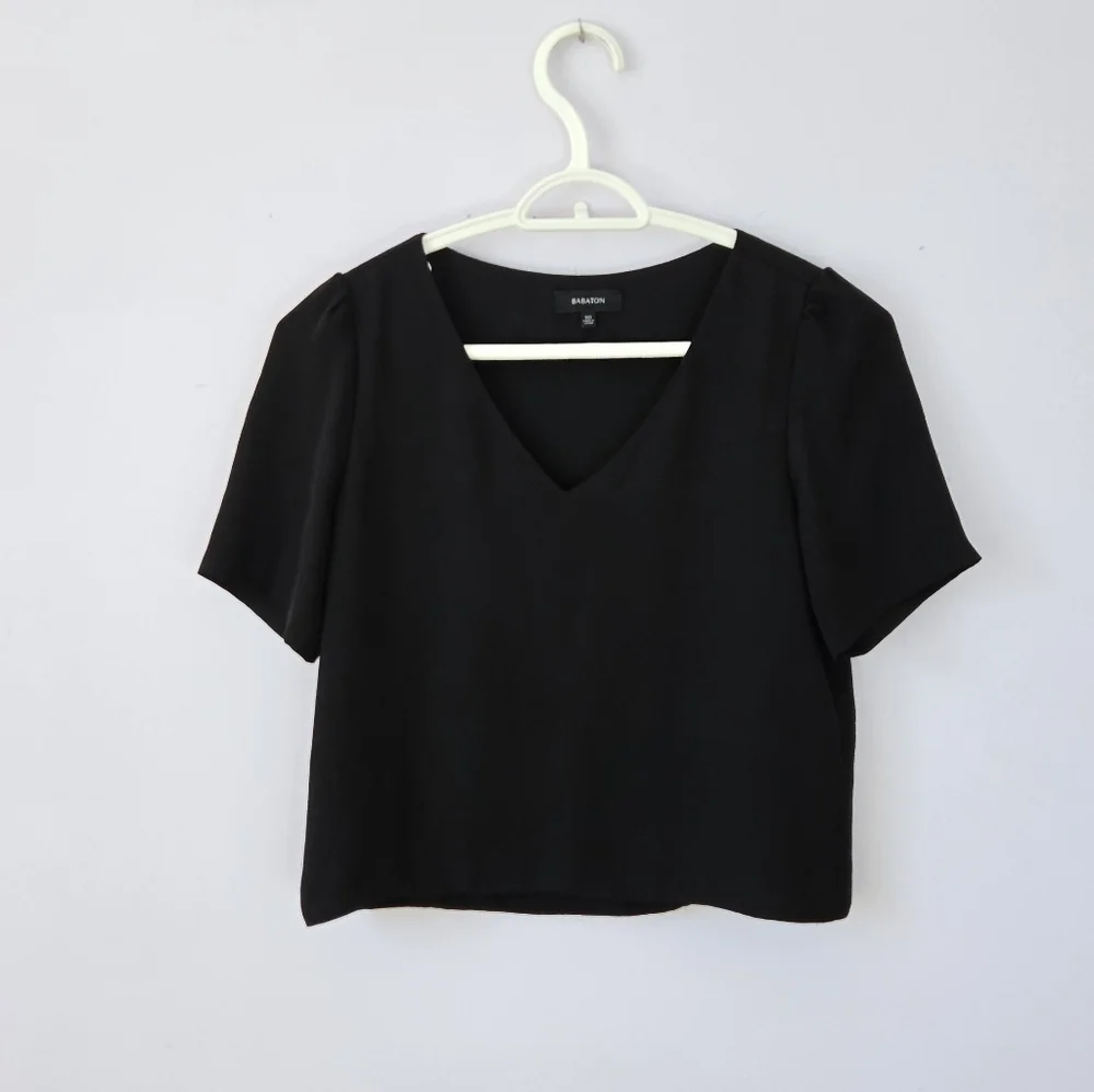 Babaton Aritzia Randy Blouse xxs Chic black crop top with a V-neckline. Perfect for versatile styling.