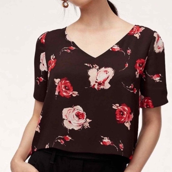 Super cute short sleeve floral print top with a V-neck made of 100% polyester Ptp 19”