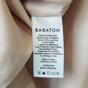 V essential. Babaton's version of the t-shirt blouse has a streamlined silhouette that is cut to hang off the body. It’s made from a lightweight fabric with a beautiful drape.