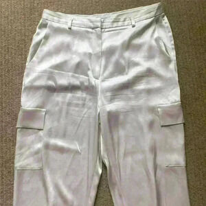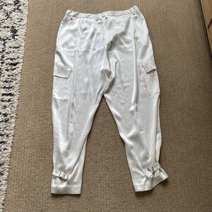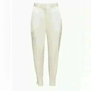 Babaton Refined Satin Cargo Pant, bone/white high waisted pant, size 16.