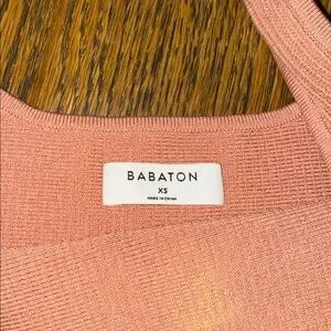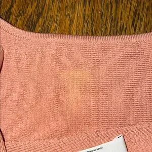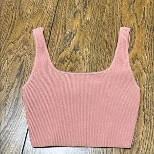 Babaton ribbed tank size XS color is more coral over pink, never worn before. I purchased from Aritzia and then saw the mark on the inside and because I took the tags off I wasn’t aloud to return. The spot does not show through just shows on the side touching your skin, Price reflects the mark or OBO. My loss your gain