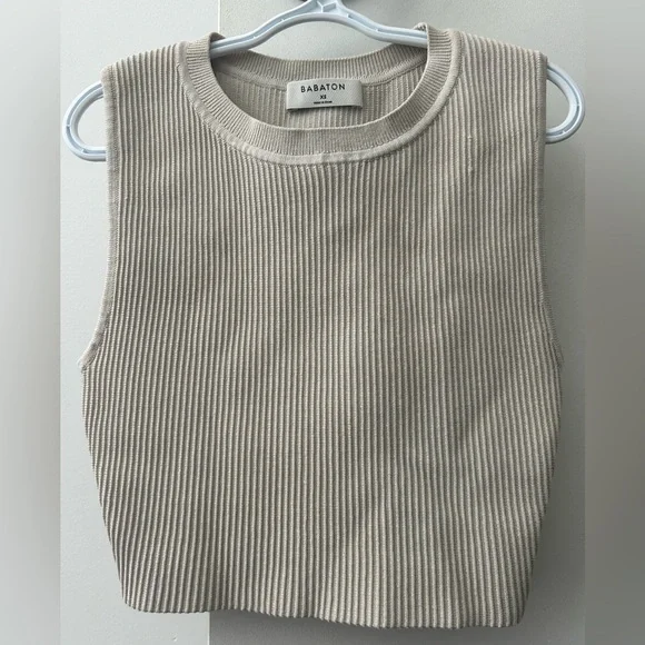 Elegant ribbed knit tank by Babaton. Versatile cream shade. Ideal for any wardrobe. Like new condition.