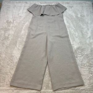 Babaton Romper Size 4 Nude Tan Cropped Off Shoulder Wide Leg Sleeveless Romper Ruffle