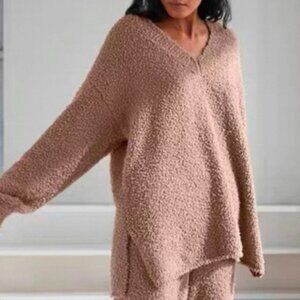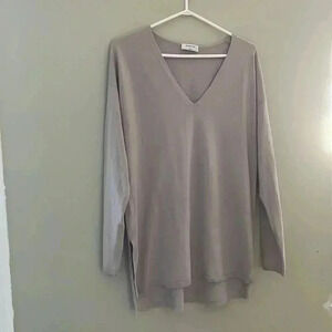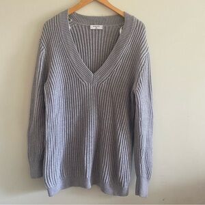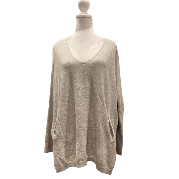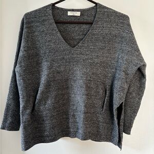 Babaton S/M Gray Wool Linen Oversized V-Neck Pocket Sweater