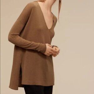 Effortless Babaton by Aritzia oversized V-neck sweater in a soft light gray. Luxe lightweight knit featuring a premium wool/viscose/linen blend that gives it beautiful drape with breathable structure.