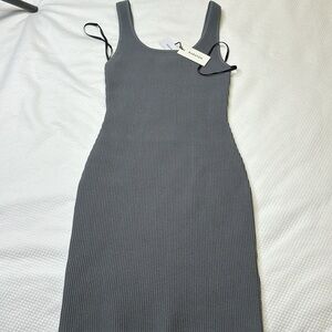 Brand new, tags attached. No rips, stains, tears or damages. No fading or pilling. Colour is gun metal grey. Very tight and form fitting. Lots of stretch. Square neckline, mid length.