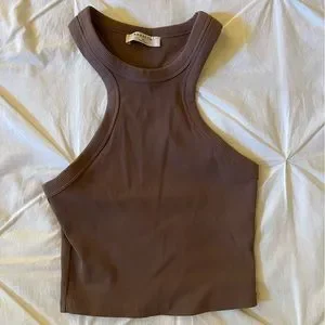 Unworn- cropped contour top, cinnamon brown