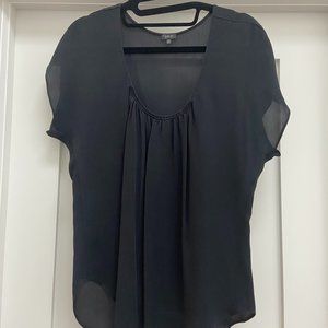 Very Safe For Work. This is a cap sleeve shell blouse with a scoop neckline. It's made from lightweight 100% silk with a drapey feel and slight sheen.