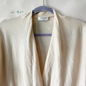Babaton Size Medium Sweater Faux Wrap Cream 100% Merino Wool V Neck Soft