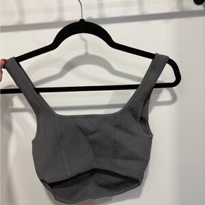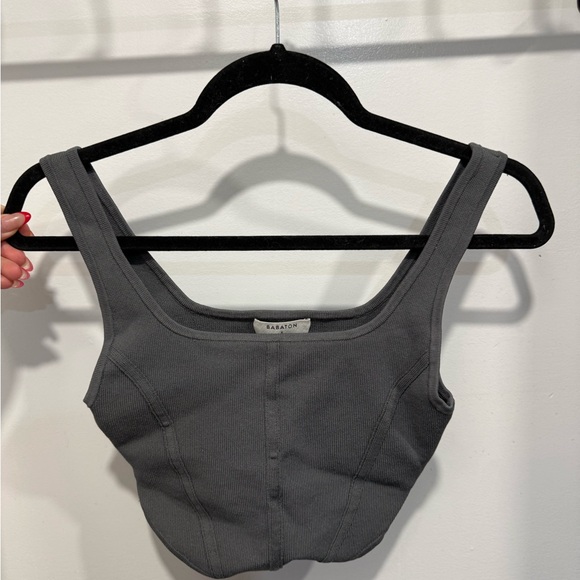 Chic charcoal bandeau by Babaton. Soft ribbed texture. Ideal for layering or solo wear.