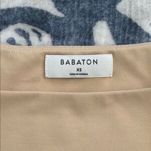 The Babaton Tan Bodysuit is a stylish one-piece featuring a square neckline and thick straps. Made from a stretchy, solid material, it offers a comfortable fit and a classic tank-style silhouette. Its warm tan color adds a touch of sophistication to any ensemble.