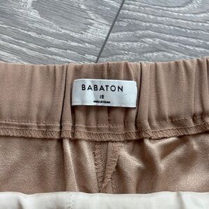 Stylish Babaton chinos in a versatile tan shade. Ideal for any occasion.