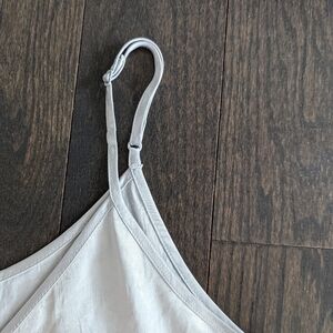 Flowy light blue / silver tank top with adjustable straps and vneck cut. It is in good condition, there is just a bit of foundation marks on the vneck that should be able to be removed!