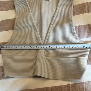 Babaton Taupe Sculpt Knit Deep V-Neck Cropped Tank Top Size Medium